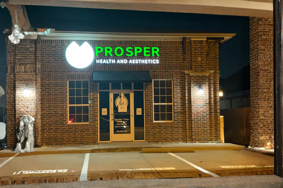 Custom illuminated building signage designed, fabricated and installed for commercial properties across DFW.